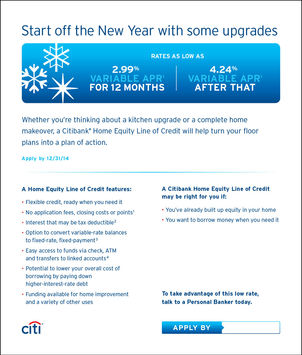 Bodnar Design was contracted by Havas Chicago to work on advertising for Citibank's end-of-year mortgage and home equity promotional interest rates.